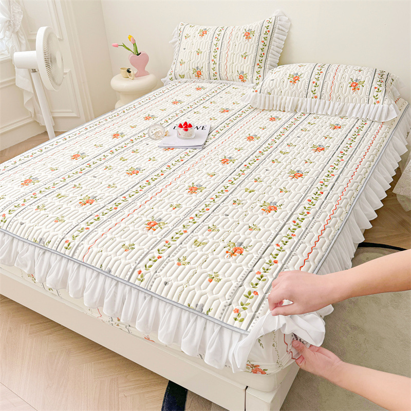 ラテックスマットベッドスカート夏洗える折りたたみプリンセススタイルレースホームアイスシルクエアコンマット3通気性