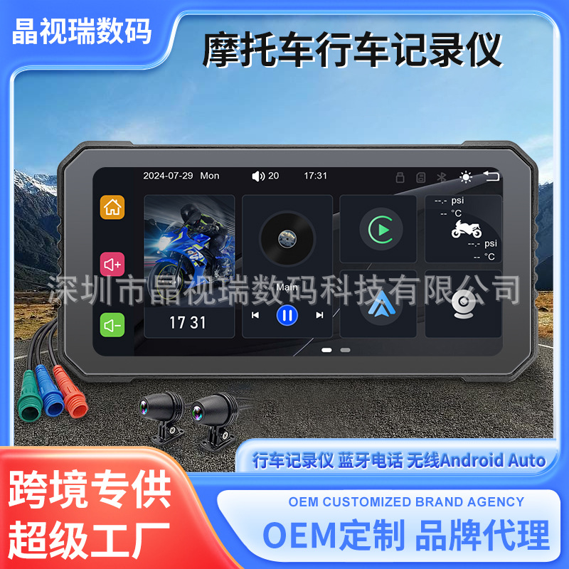 国境を越えたバイク記録計carplayスクリーンナビゲーション1080pタイヤ圧検出防水5インチ大画面記録