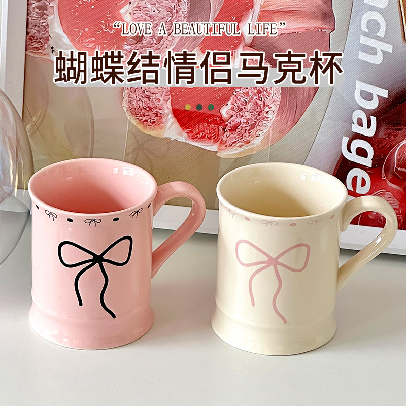 Ins風蝶結びカップルカップマグカップセラミック水カップコーヒーカップ高颜値女子誕生日プレゼント