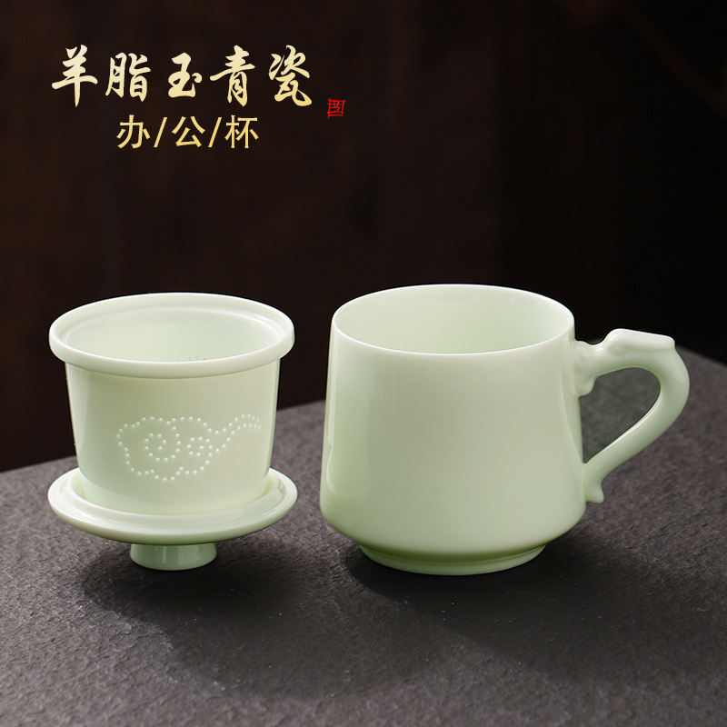 羊の玉の青磁の事務の杯は取っ手のお茶を持って高級な陶磁器の水の杯の個人の杯の専用の湯飲みの贈り物を分離します。