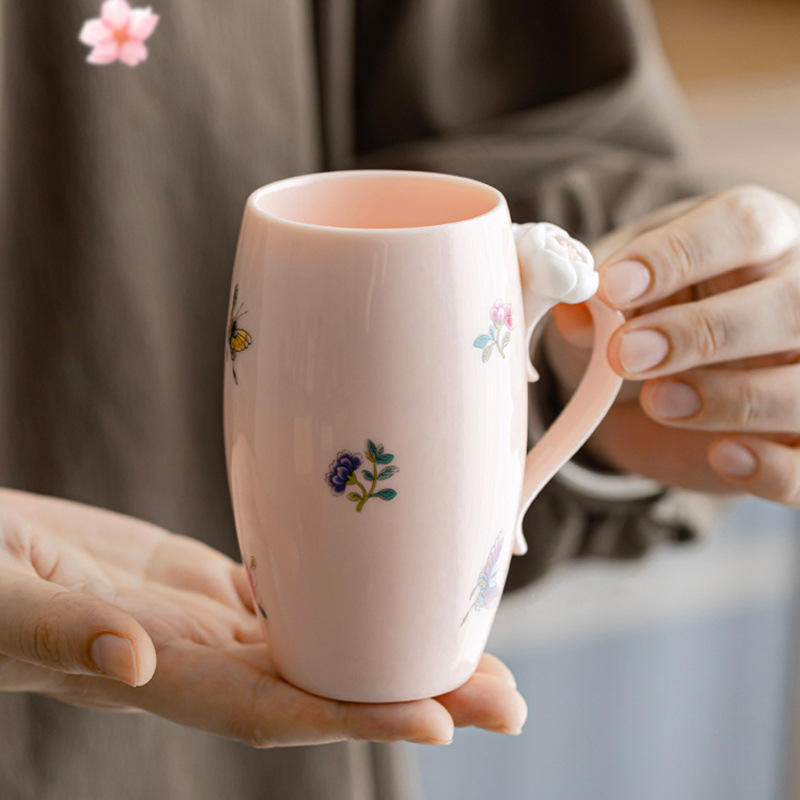 原鉱粉泥手作り花陶磁器カップins風マグカップ牛乳カップクリエイティブカップジュースカップ花茶コーヒー