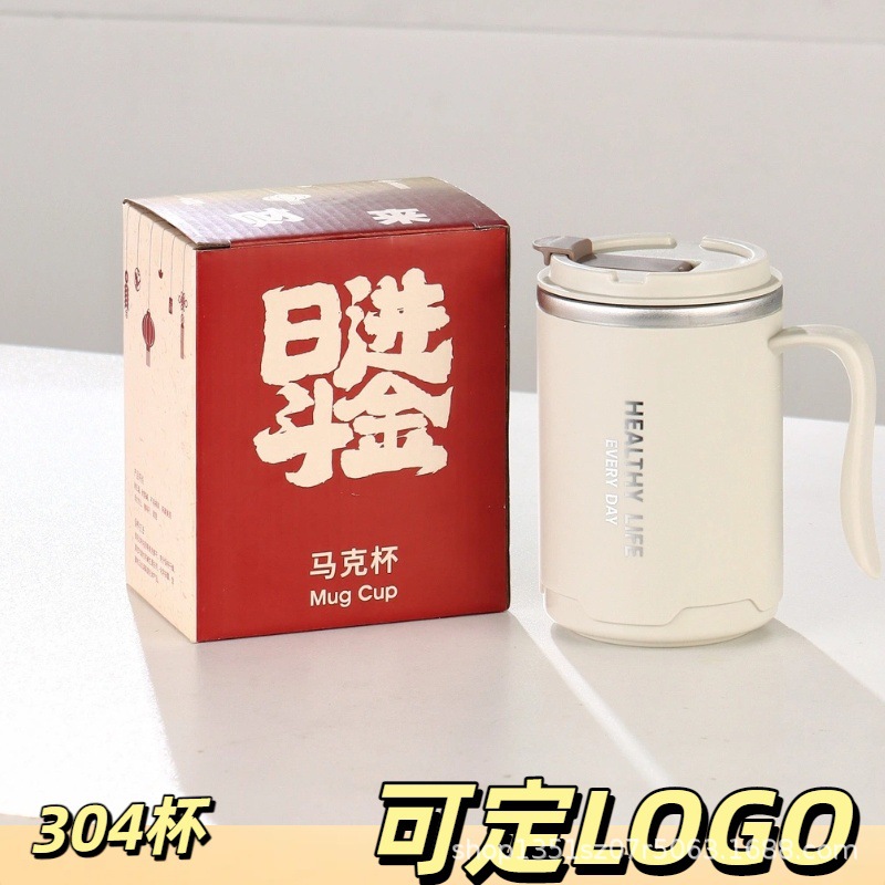 304ステンレス製蓋付きマグカップロゴ創造性高颜値お茶漏れ付きオフィスコーヒーカッププレゼント卸売り