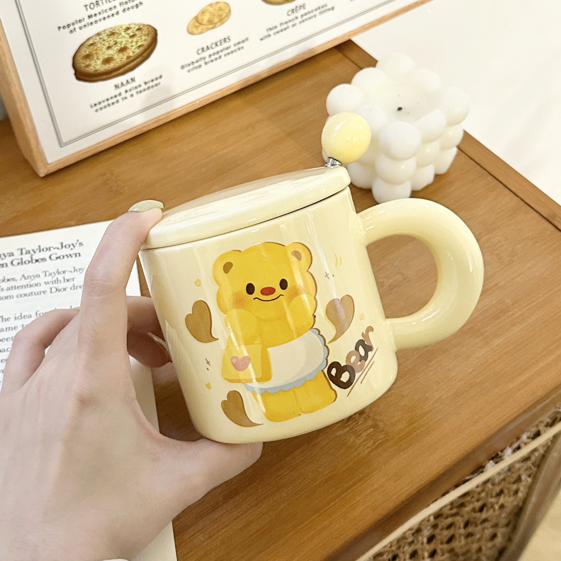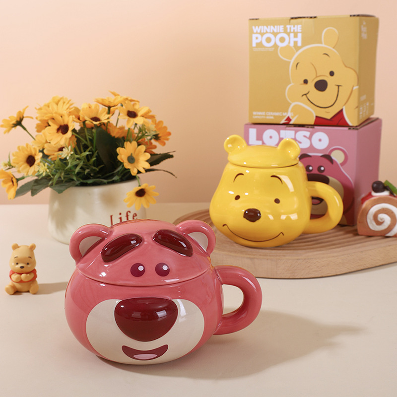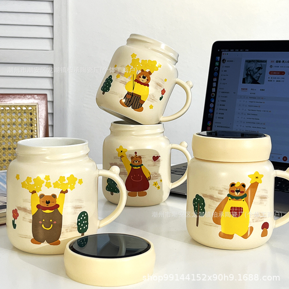 バター熊陶磁器マグカップ蓋付きオフィスカップルカップ誕生日プレゼント女子かわいいカップ家庭用