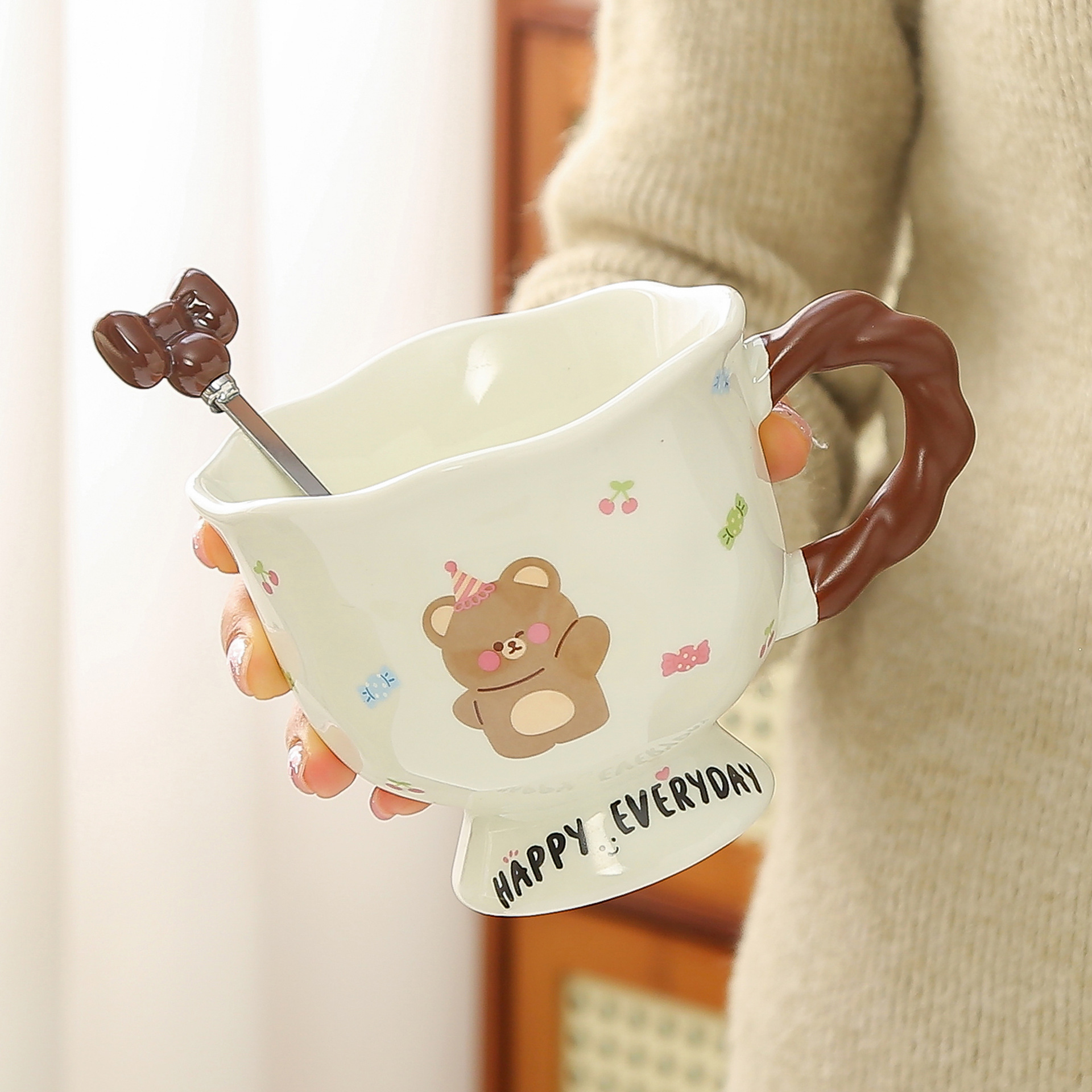 クマセラミックマグかわいい手描きセラミックマグクリームスタイル朝食マグミルクマグニッチインコーヒーカップ