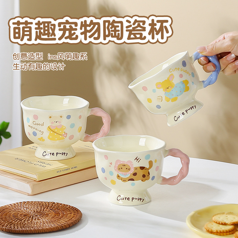 キュートでかわいいペットホームブレックファストマグ手絞りカップセラミックウォーターカップギフトボックスセット付き