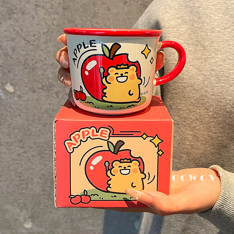 かわいいリンゴクマカスタードセラミックマグハンドヘルドカップ在庫ありホーム朝食ミルク親友の誕生日プレゼント