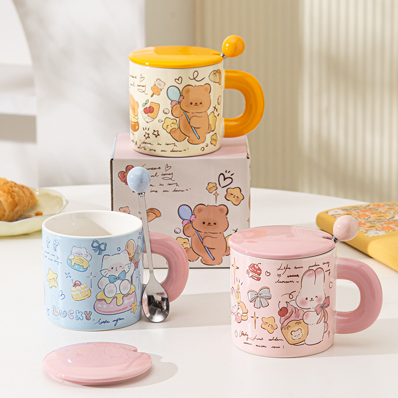 陶磁器カップ大容量サーカス熊ウサギかわいいアニメカップ牛乳カップコーヒーカップスプーン付きプレゼント
