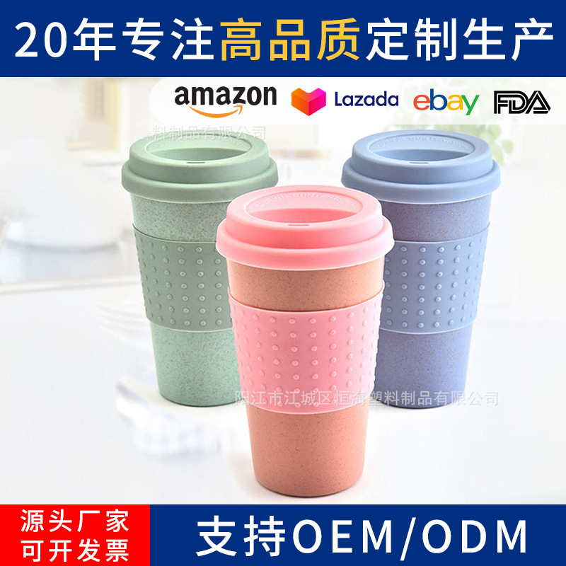 ヨーロッパ風小麦ストロー繊維製ウォーターカップ、車載用シリコン製コーヒーカップ、プラスチック製個性派マグカップ(蓋付き)