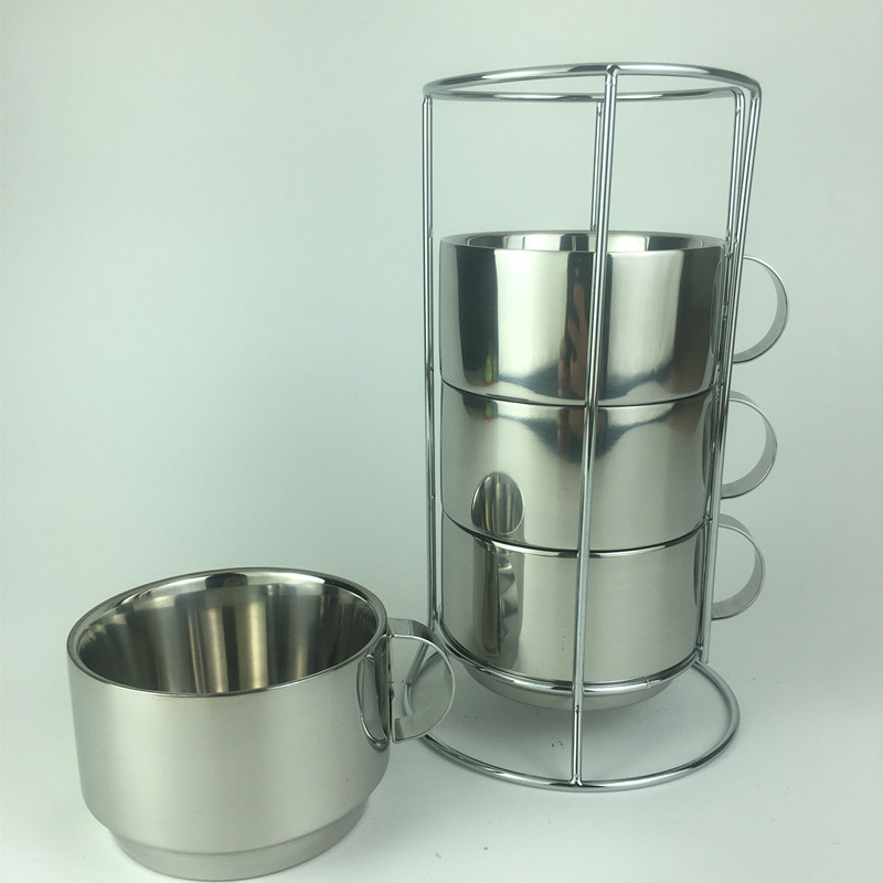 ステンレスの二層はすぐにマグカップを厚くして丸いワイングラスのコップの取っ手の断熱カップのコーヒーセットを持ちます。
