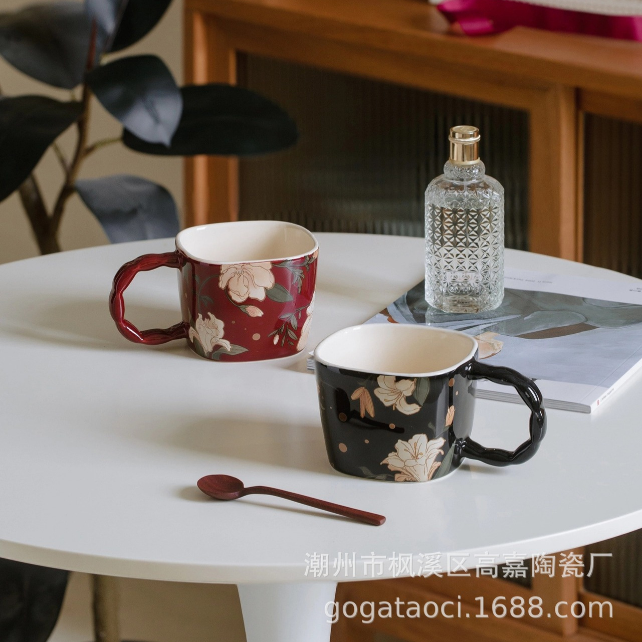 花言葉秘境レトロ百合花角杯陶磁器カップ家庭用業務カフェ布カップ牛乳カップ