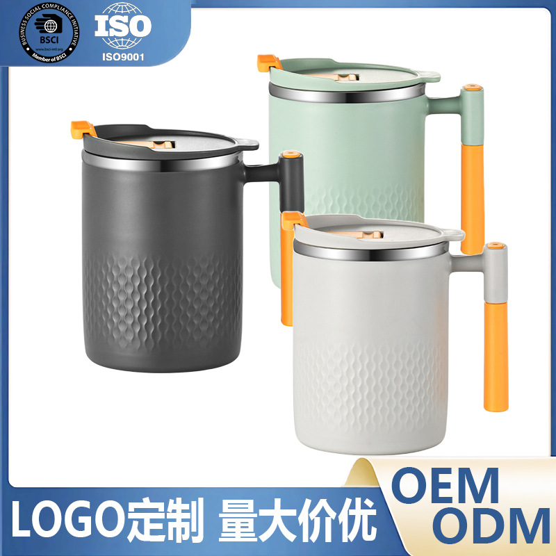 304ステンレスミルクコーヒー随行カップマグカップ二重厚さカップ蓋付きハンドル付き学生サラリーマン