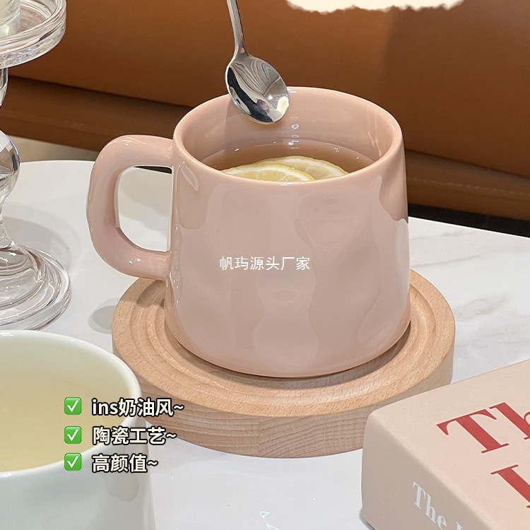 北欧シンプルinsセラミックマグカップ太ったハンドルオフィスコーヒーカップセット洋食皿デザート皿