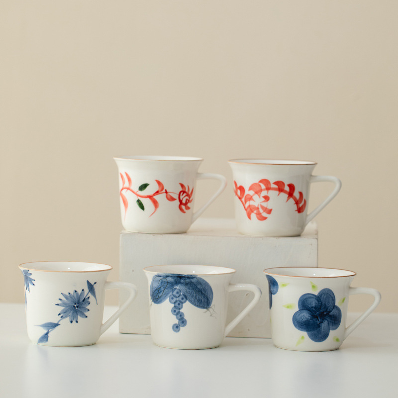 玖田焼陶磁器純手描きは水杯の高顔値コーヒーカップを釉薬で彩ります。