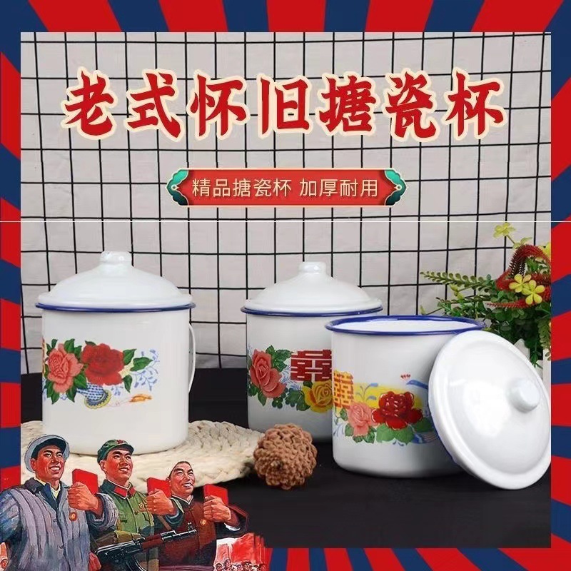 エナメル花蓋カップエナメルカップ喜字レトロ花蓋カップ旧式エナメルカップ双喜花カップエナメルカップ
