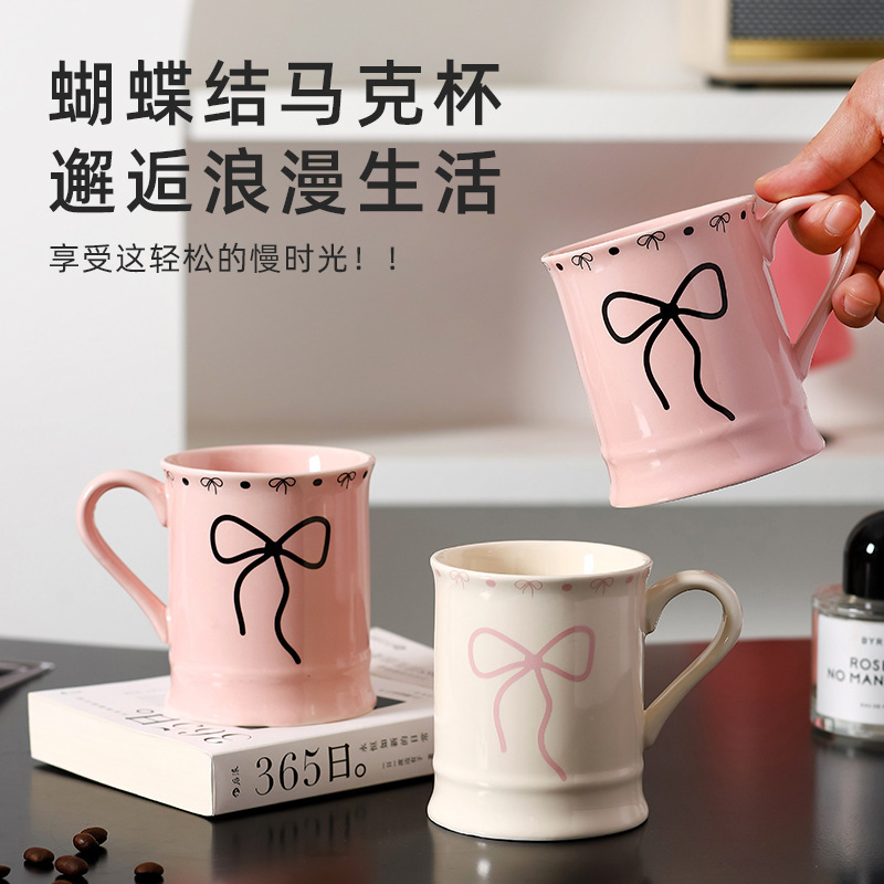 陶磁器の蝶結びのマグカップの事務家庭用牛乳の朝食のコーヒーカップの女子学生のカップルの誕生日のプレゼントのお土産