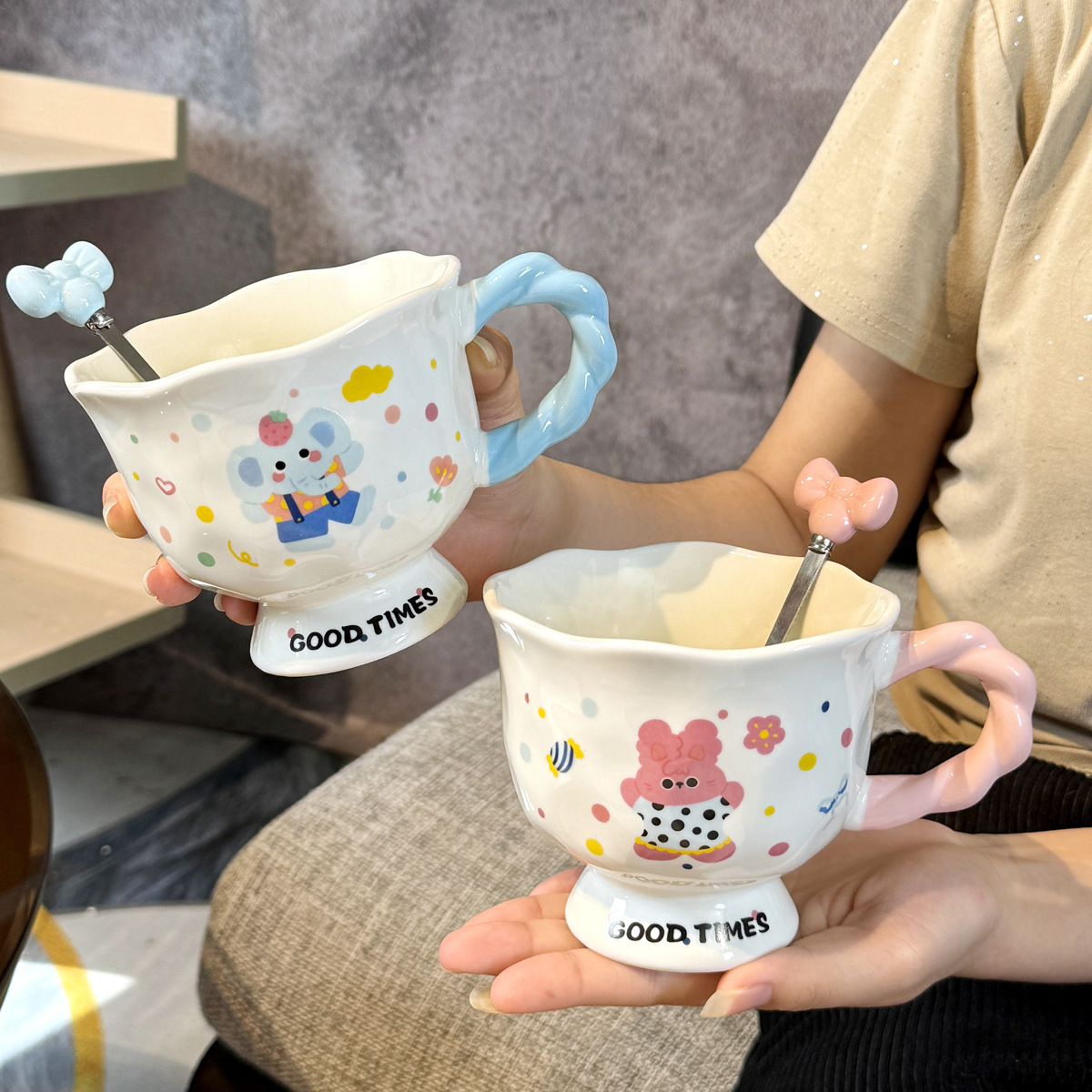 韓国輸出高脚マグカップかわいい陶磁器カップ高颜値カップ夏女子カップ朝食カップコーヒーカップ