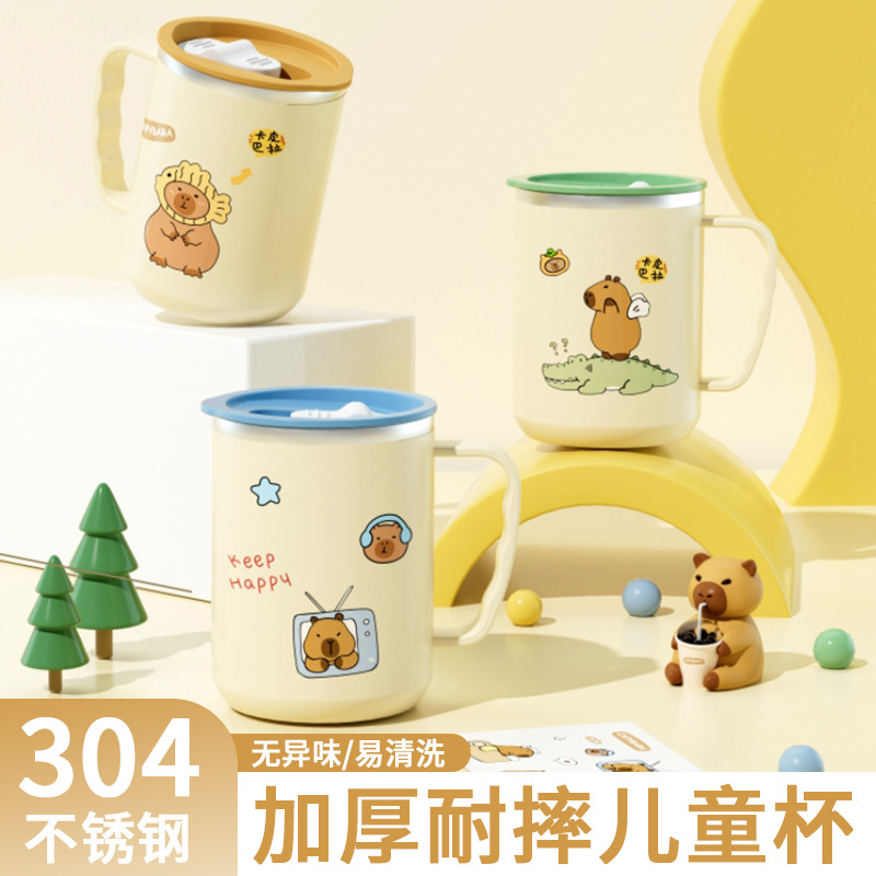 304ステンレス製幼稚園児指印コップ二重パーマ防止断熱小牛乳コップ食品級飲料コップ