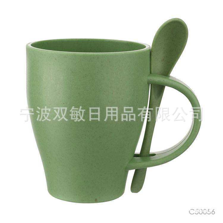 12oz小麦わらスプーン付きコーヒーカップハンドル付きプラスチックミルクカップplaカップ、ppプラスチックカップ