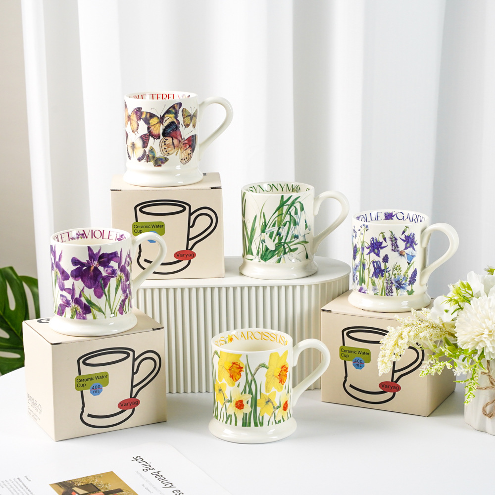 セラミックマグカップ朝食カップ手描きクリエイティブコーヒーカップ田園風カップ家庭用高足カップオート麦カップ卸売り