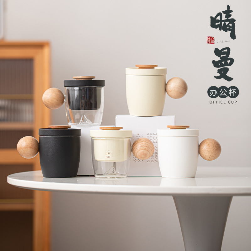 晴曼オフィスカップ陶磁器茶分離カップ家庭用ガラスカップオフィス個人専用フィルターカップ