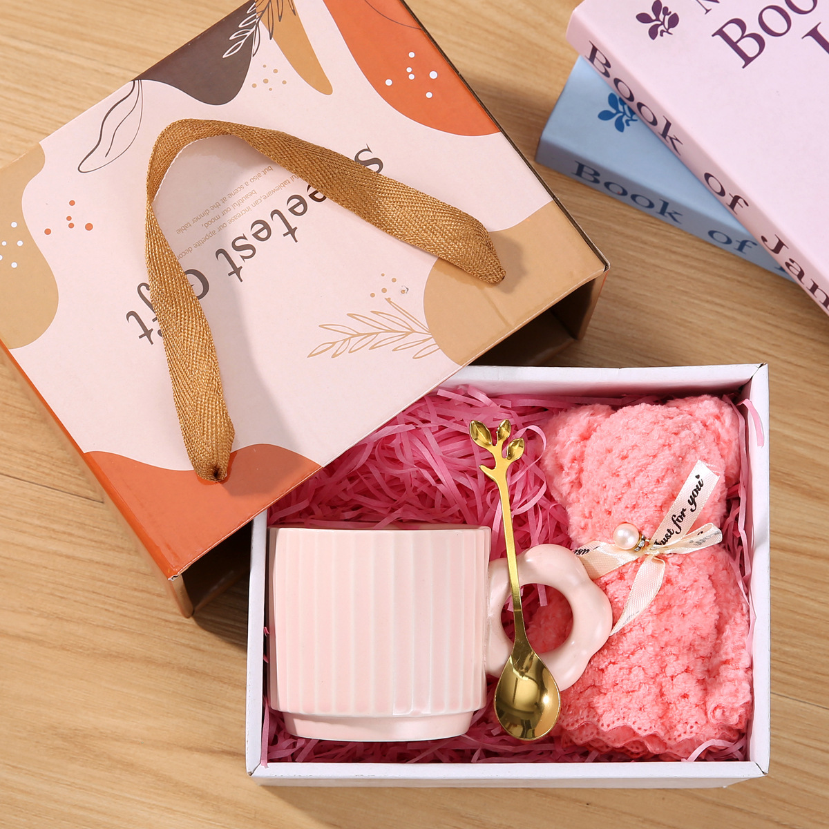 クリエイティブでかわいいマグカップギフトボックス、スプーン付き高価値セラミックマグ、ギフト、お土産、縦縞マグカップ