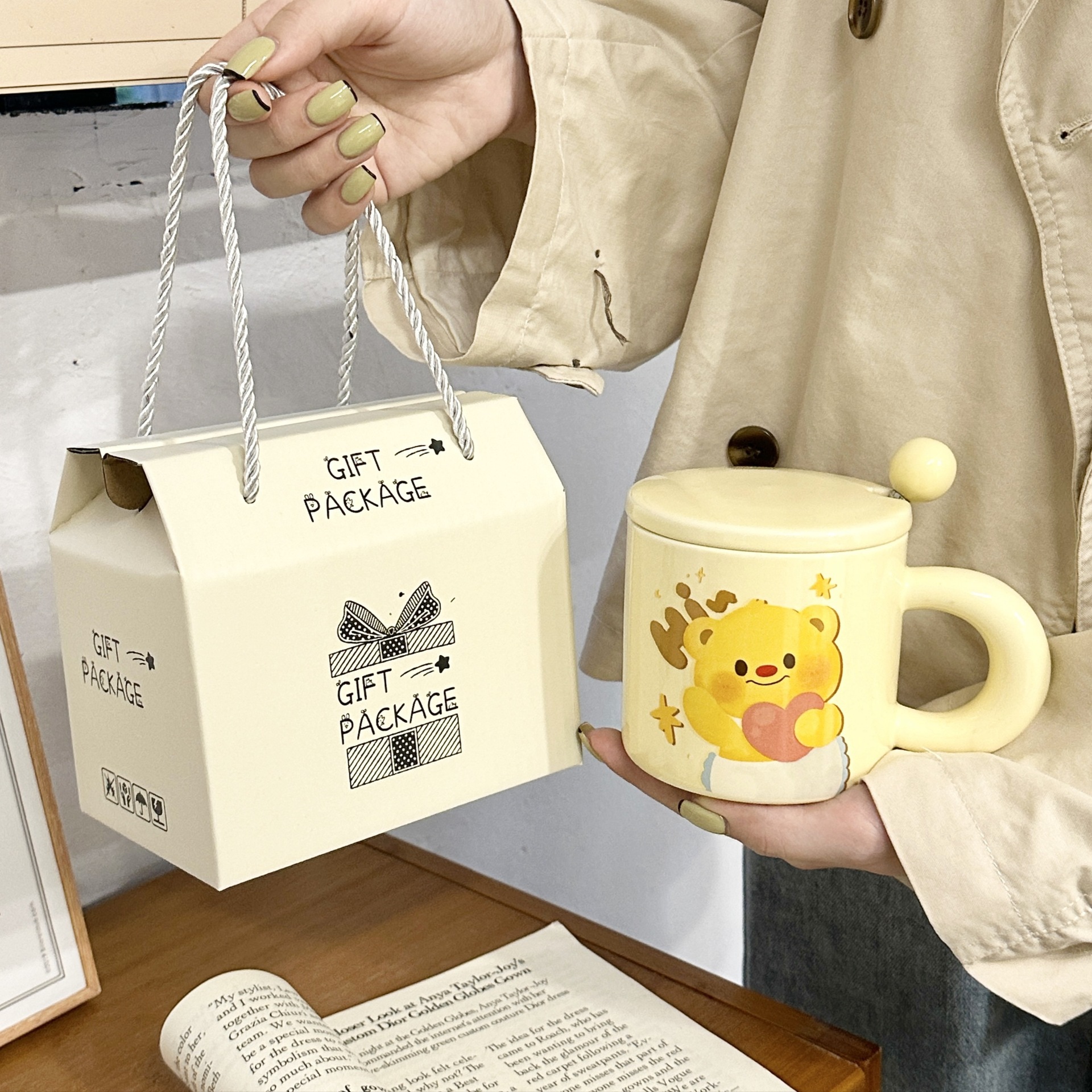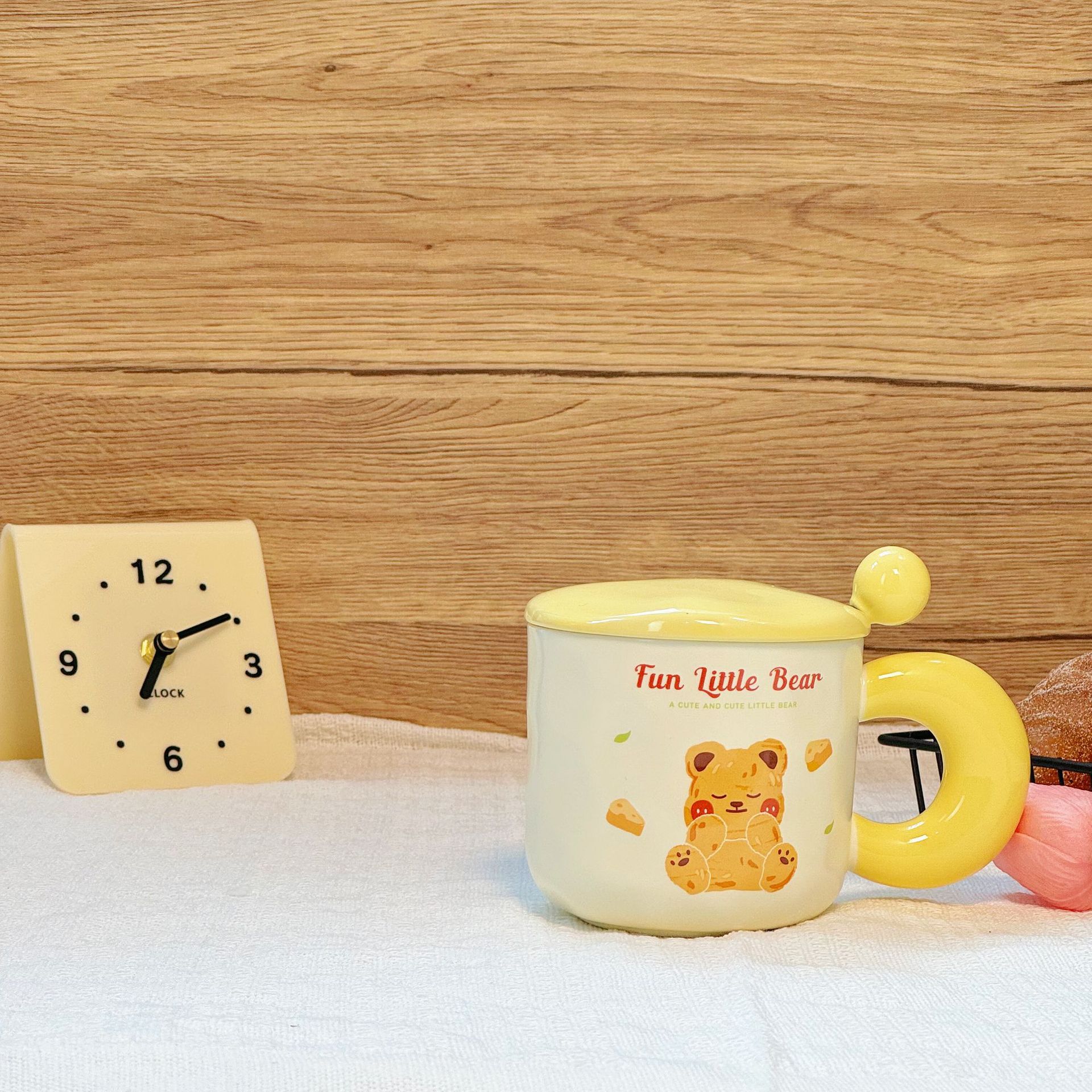 ネットレッドinsミルク黄色ベアーマグカップ蓋付き誕生日プレゼント家庭用高颜値カップかわいいお土産