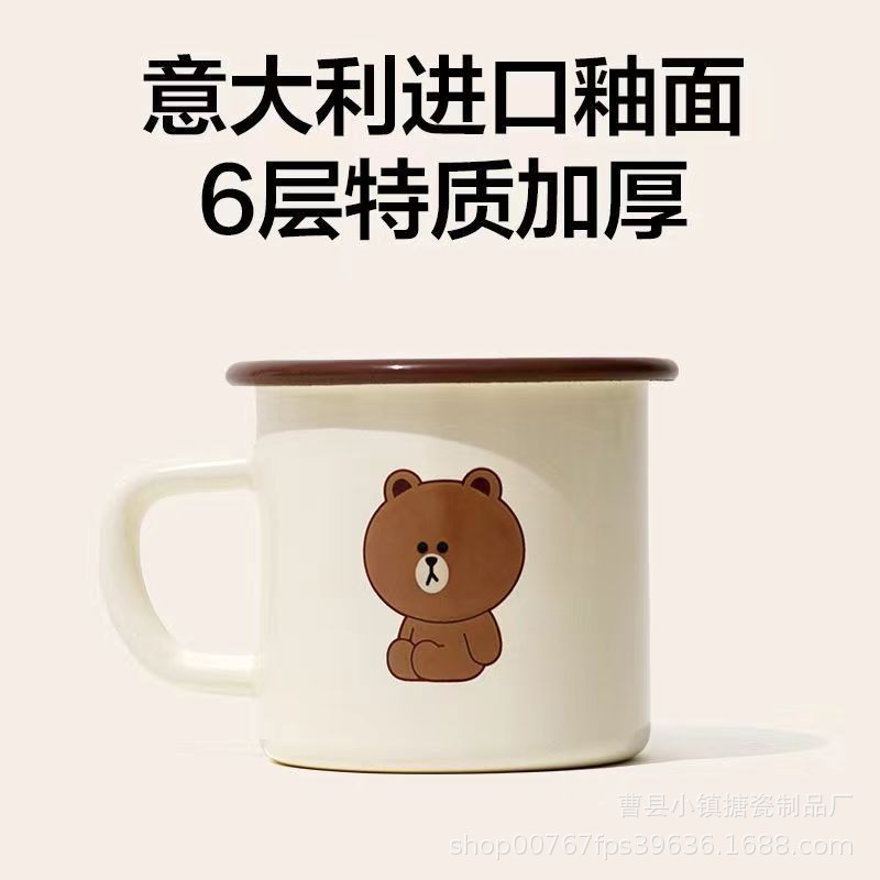 卡通可爱小熊搪瓷杯 吧台咖啡杯印花搪瓷缸 铁水杯火锅盅加印LOGO