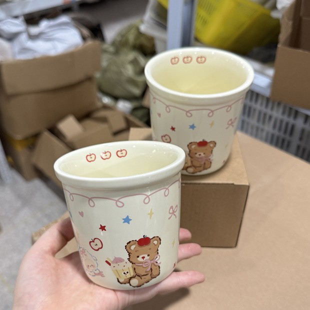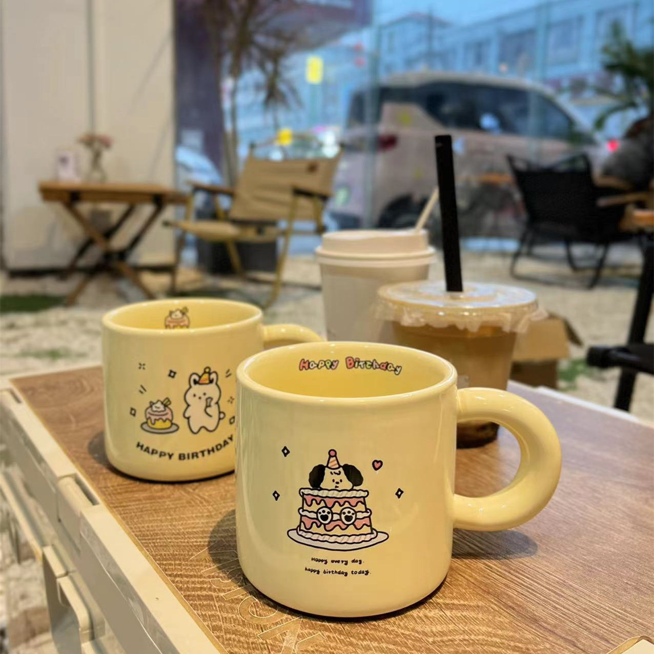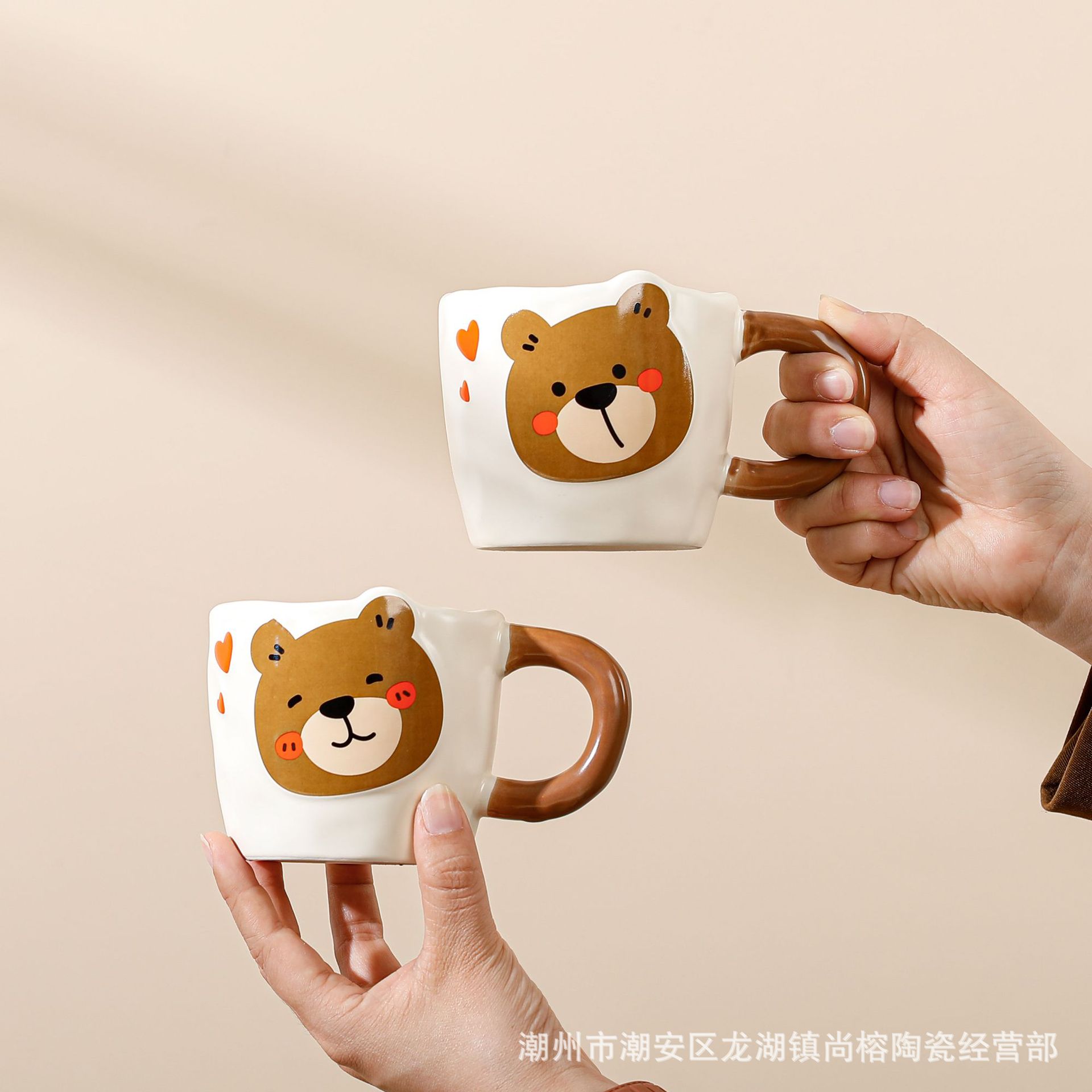 クリーム色セラミックカップ韓国式insコーヒーカップ牛乳カップカスタム漫画子犬模様熊マグカップ