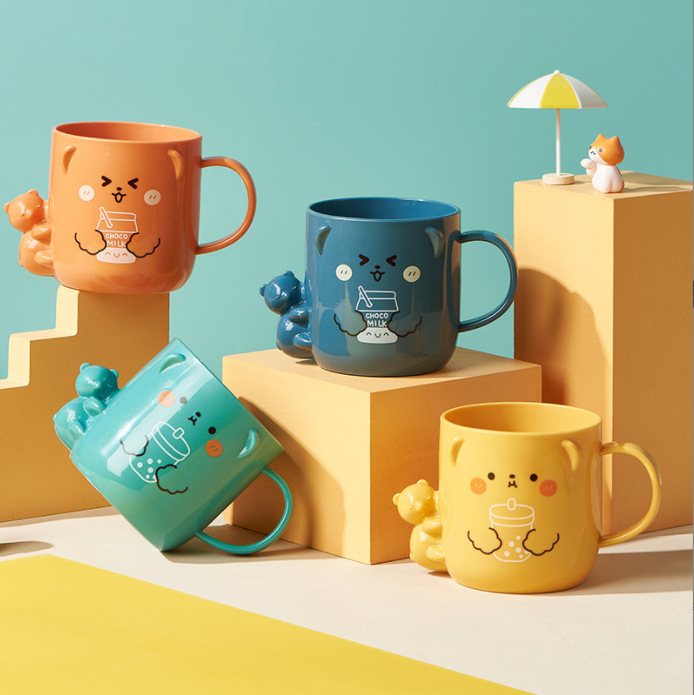 漫画プリントプラスチックカップ家庭用クリエイティブベアー抱き歯ブラシカップかわいい赤ちゃんブラシカップ子供洗浄カップ
