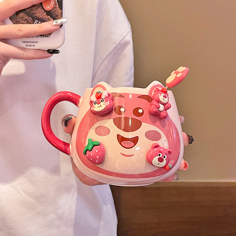 いちご熊大腹マグカップ女子セット高颜値カップ誕生日プレゼントかわいい陶磁器カップオフィス