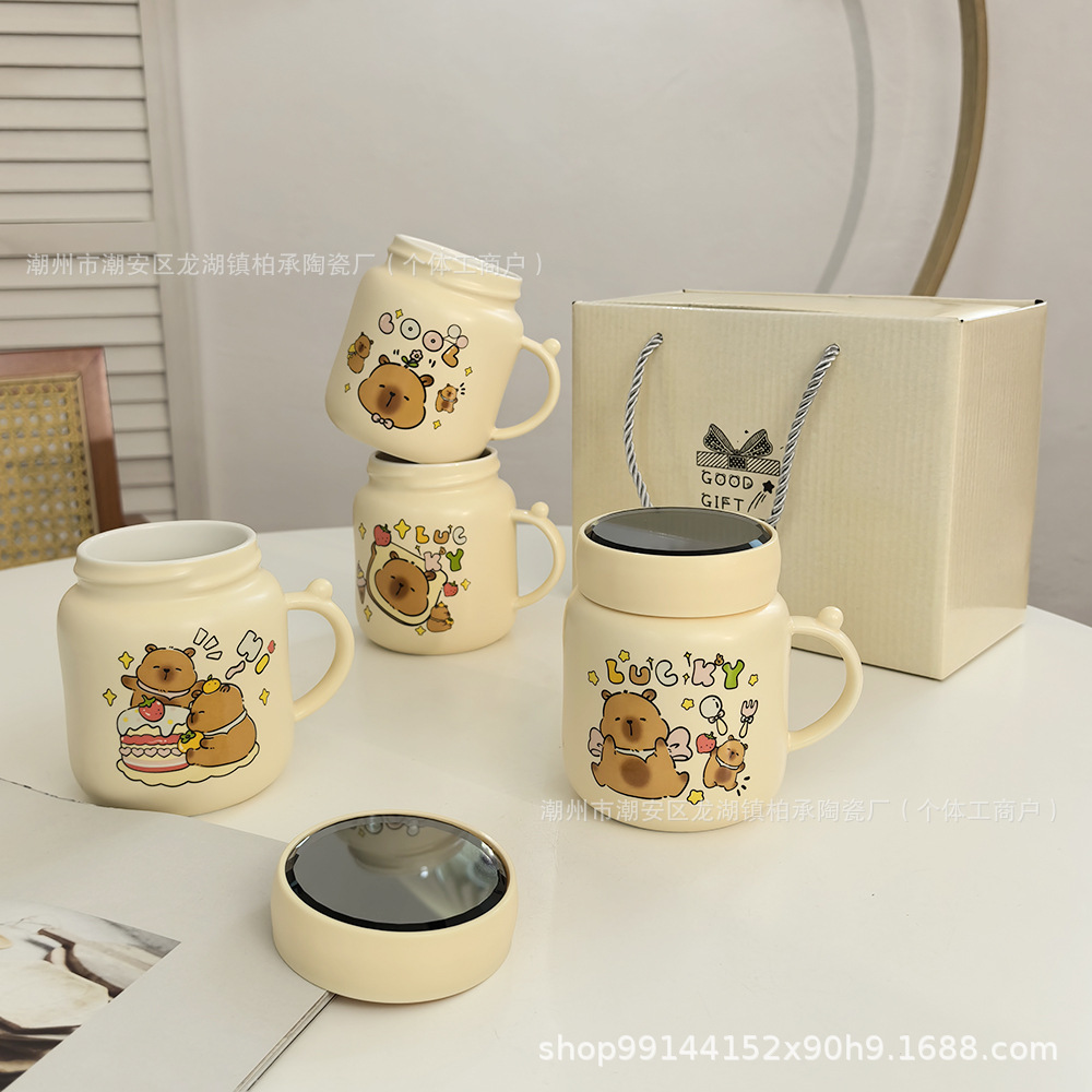 かわいいチリベアマグ スプーン付きウォーターカップ 見た目が良いガールズカップ 蓋付き セラミックカップ ニッチなデザイン