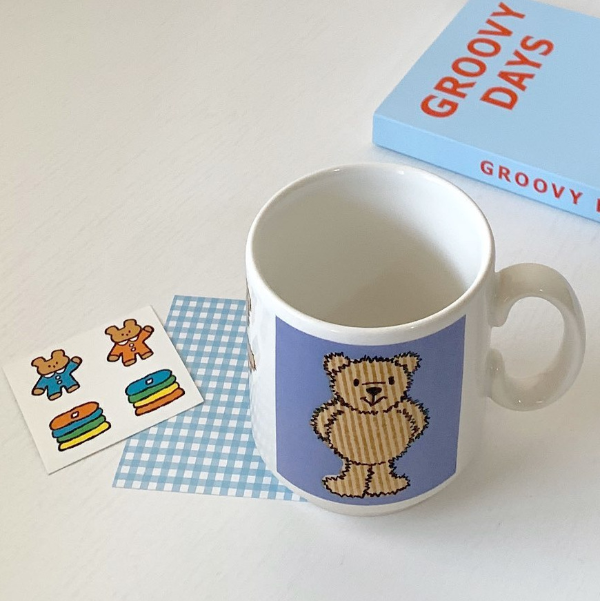 小ロット印刷春日クリーム風セラミックカップ260ML大容量かわいいバターベアカップ微風ブルー