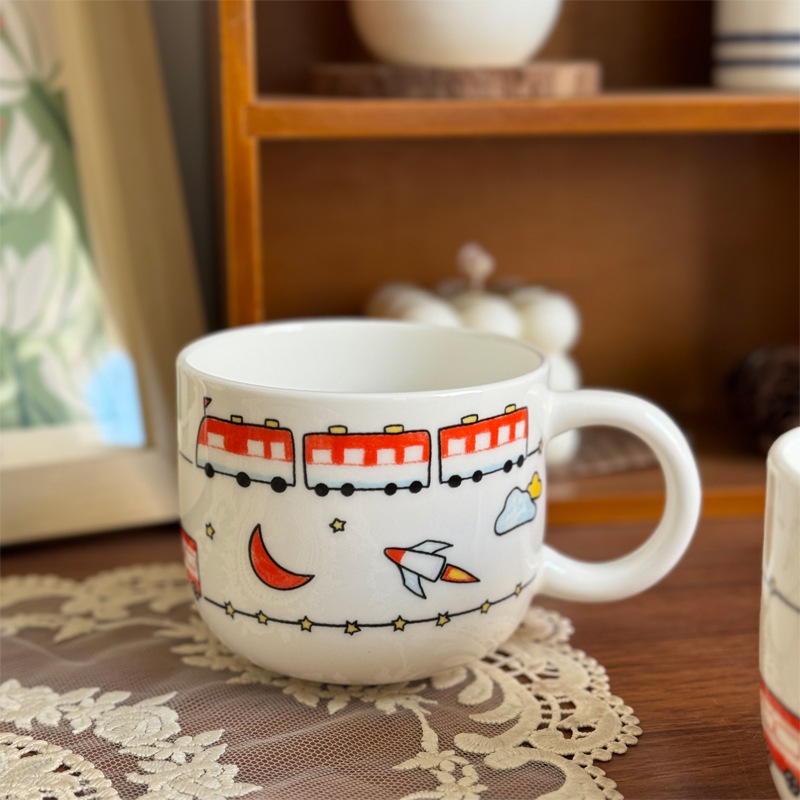北府釉薬下彩日本式小汽車骨磁器子供カップ陶磁器カップミルクカップかわいいアニメ丸カップ