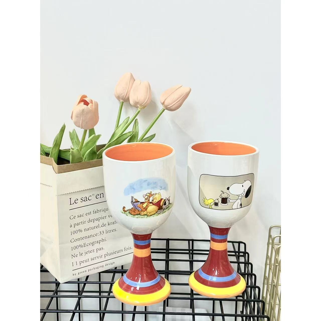 クリエイティブアニメかわいい熊winniスヌーピー陶磁器高足カップミッキーワイングラス飲料カップカップルカップ