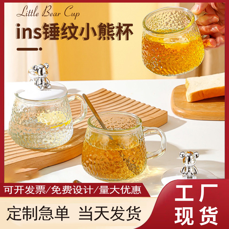 ギフトグラス卸売りins風スプーン付きベアグラスマグカップ広告カップカップ