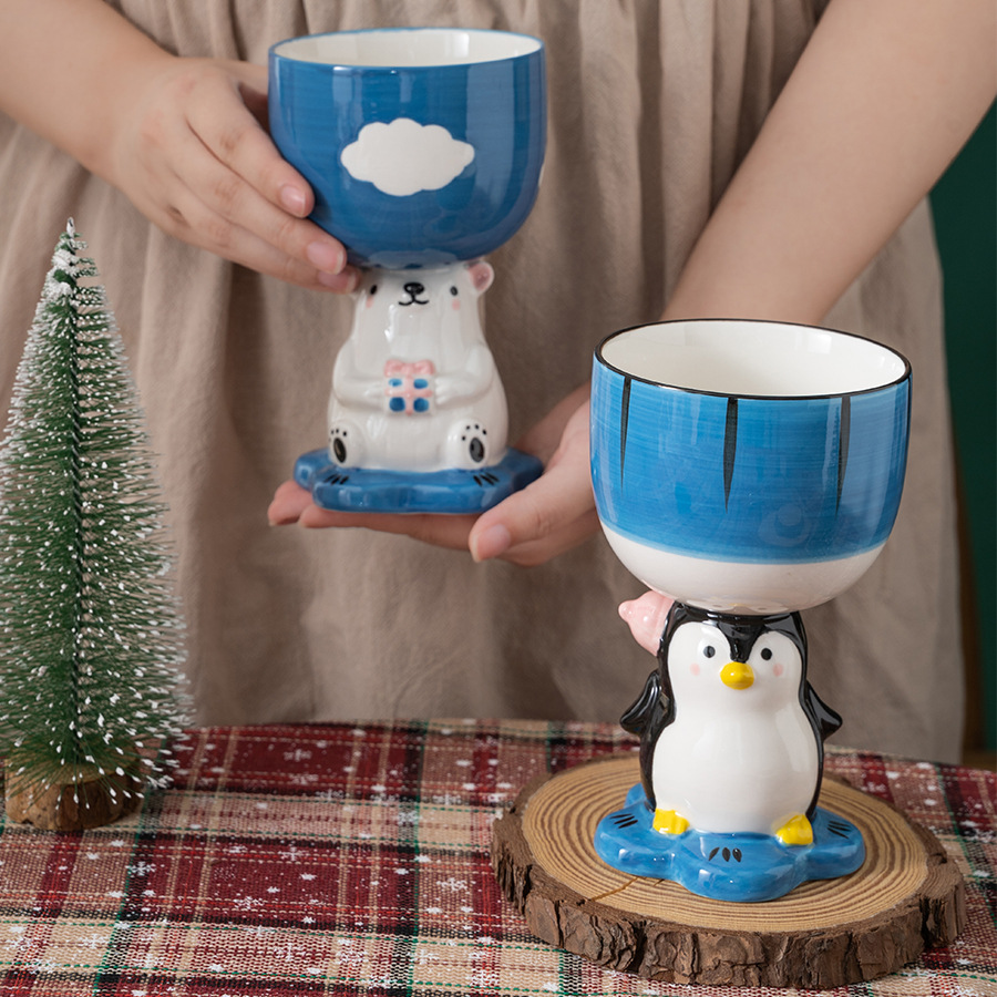 Ins風漫画かわいい手描き手握り立体ペンギンホッキョクグマ陶磁器アイスクリームカップクリスマスハロウィーン