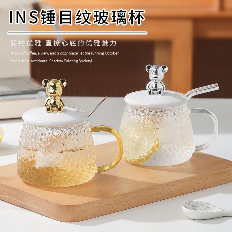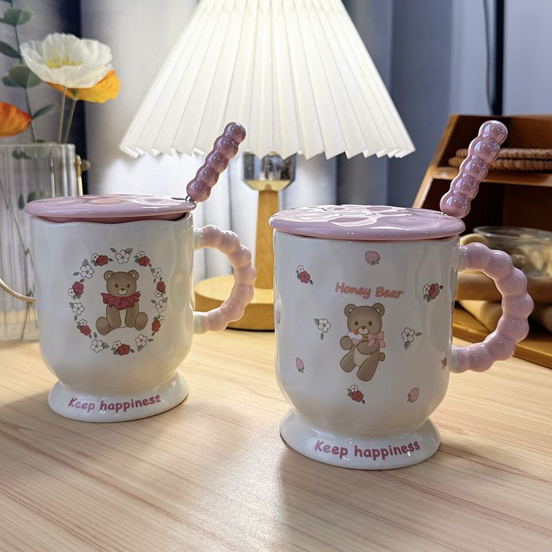 ハッピーベアマグカップins風蓋付き高颜値女子家庭用かわいいコーヒーカップオフィス大容量