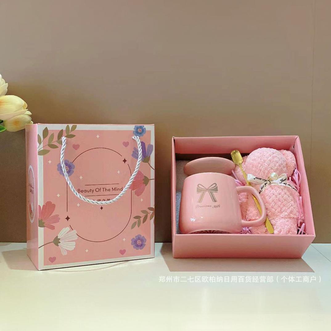 蝶結び陶磁器カップお土産セットマグカップ熊タオルギフトボックスコップ結婚プレゼント陶磁器カップ