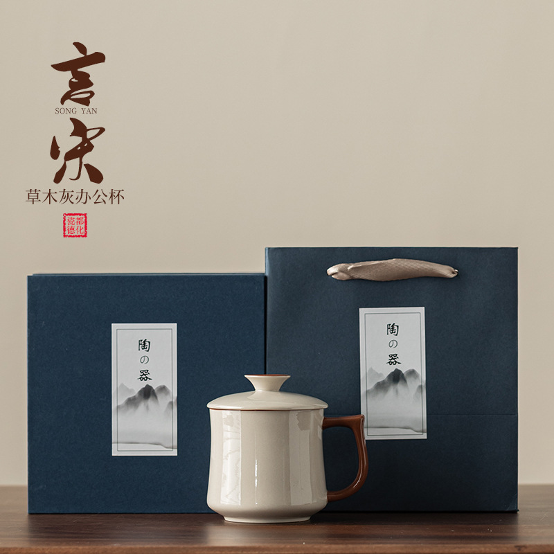 言宋オフィスカップ草木灰陶磁器カップ個人専用オフィスマグカップ家庭用蓋付きティーカップ