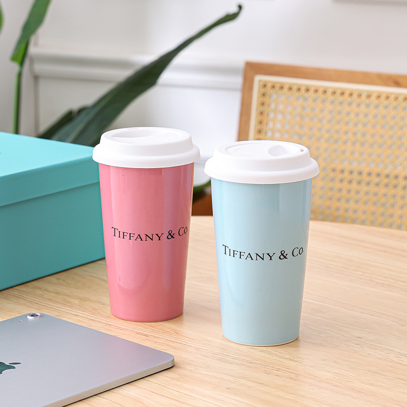 輸出ティファニーブルー二層セラミックカップミルクティーカップ 400 ミリリットル蓋付きオフィスデスクカップハンドヘルドカップ
