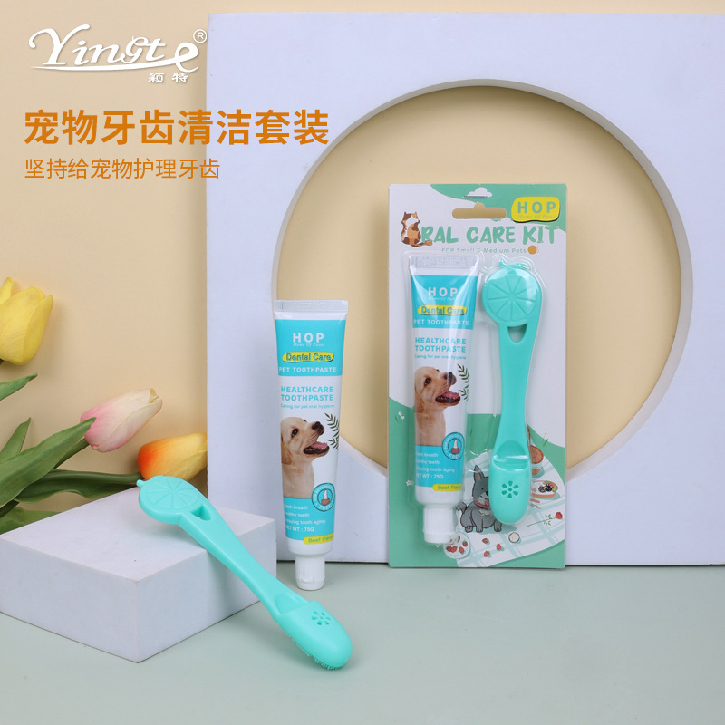 ペット専用歯磨き粉猫の口の中で犬の歯を掃除する清潔用品歯ブラシセットは口臭を除いて食べられます。