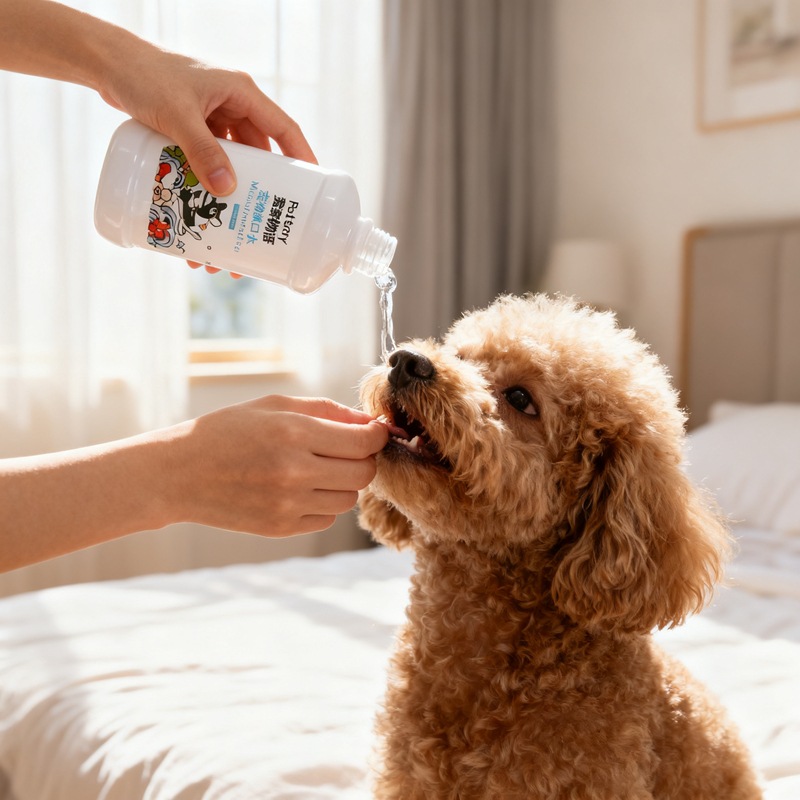 犬のうがい口の臭いは猫のペットを飲んで歯の口臭をきれいにします。