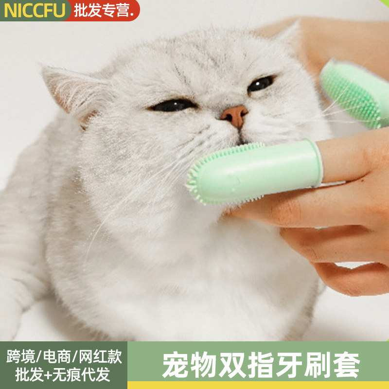 批发宠物双指牙刷 狗狗猫咪宠物用品牙齿清洁手指套 口腔清洁工具