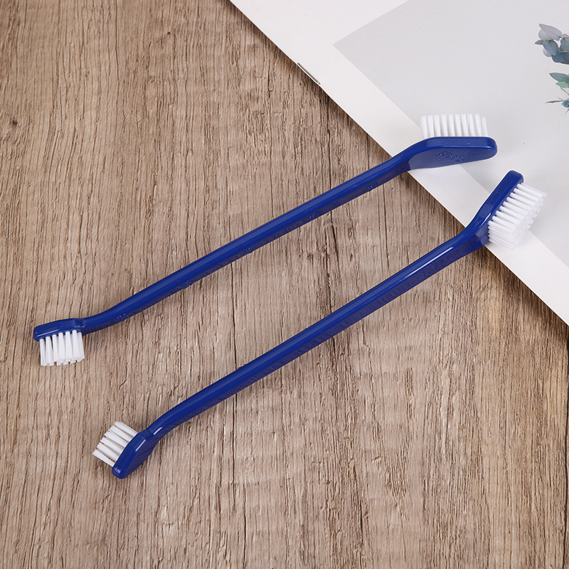 メーカーは青いナイロンの短い柄の柔らかい毛の双頭の歯ブラシのペットの口の歯の汚れの清潔なツールの卸売りを供給します。