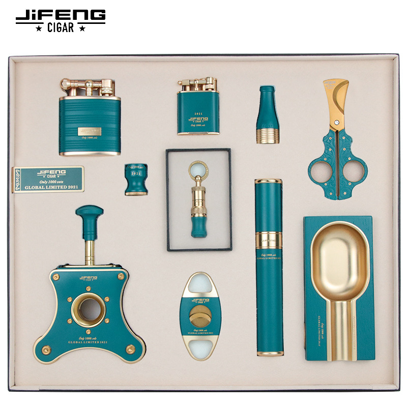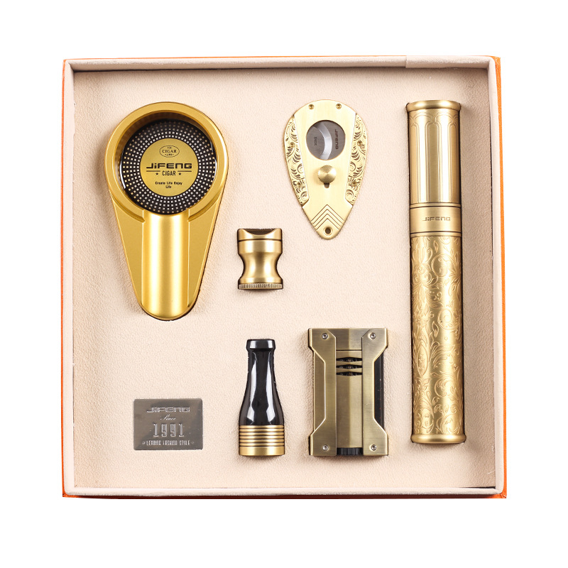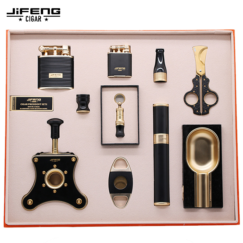 Jifeng季節風シガーカットライターセット灰皿シガーチューブタバコトートシガー煙具ギフトボックスセット