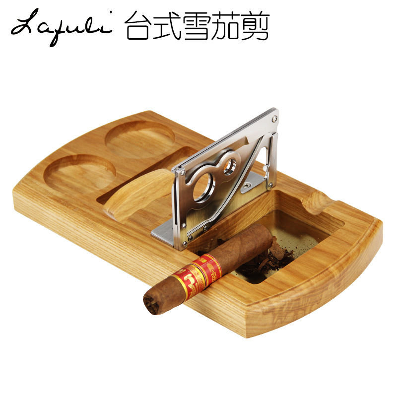 Lafuliシガーカットデスクトップシガーナイフオーク材ステンレスシガーナイフ2穴径シガーカット