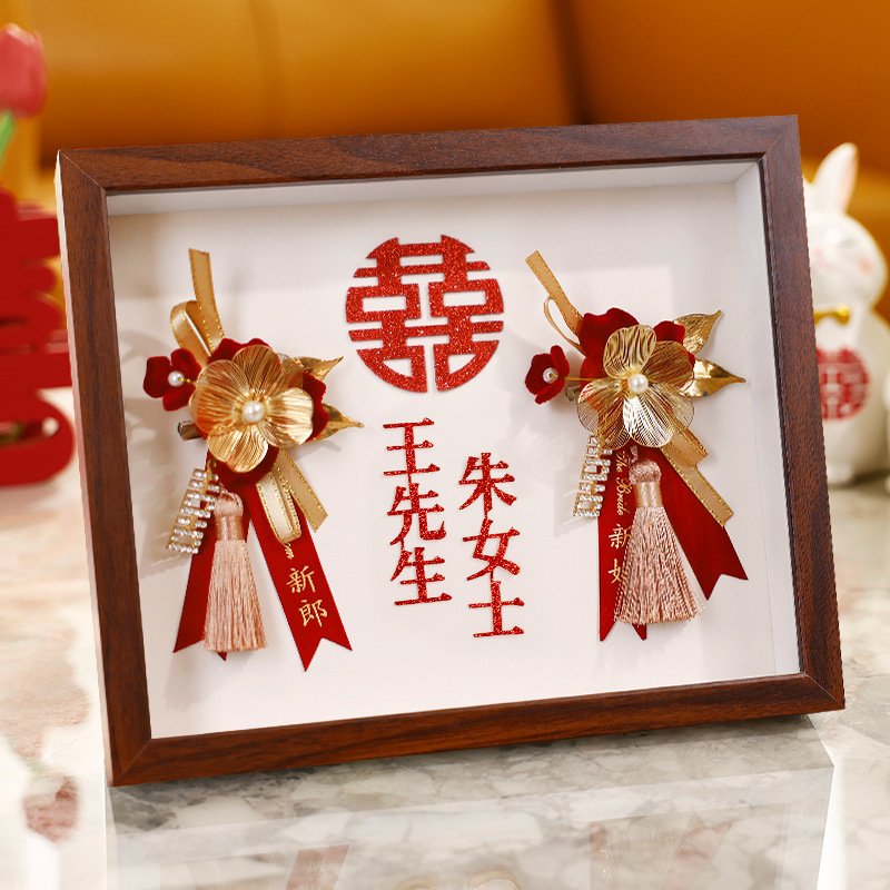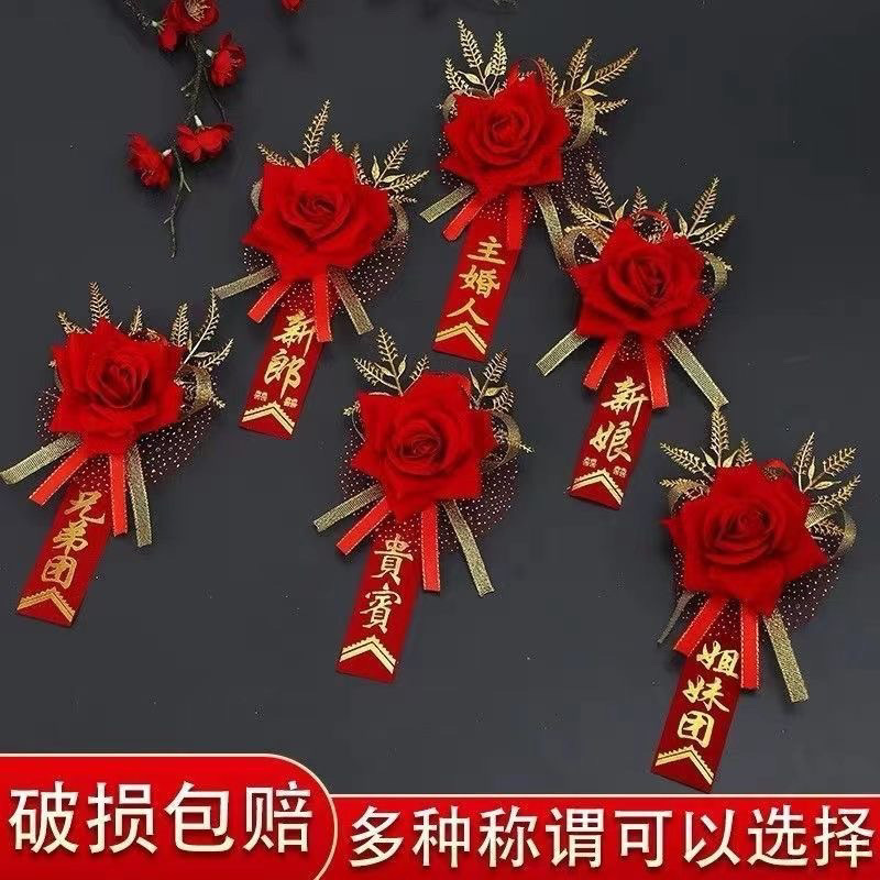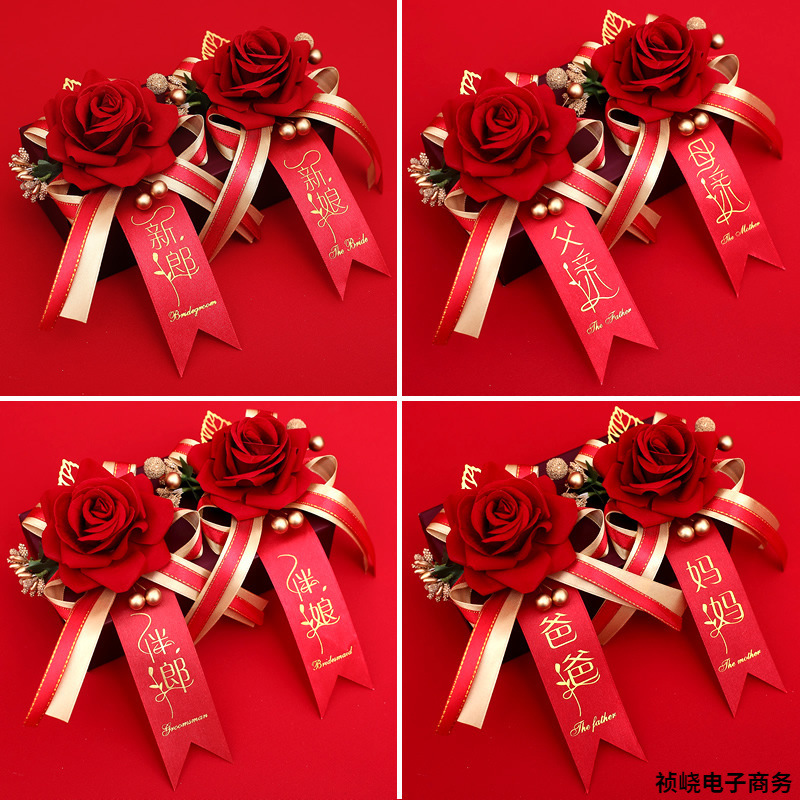 中国風の結婚式のコサージュ新郎新婦の結婚式用品ハッピーワードフルセット父母赤いコサージュハンドフラワー