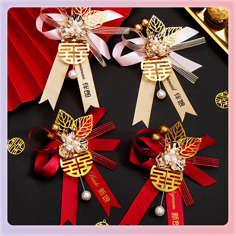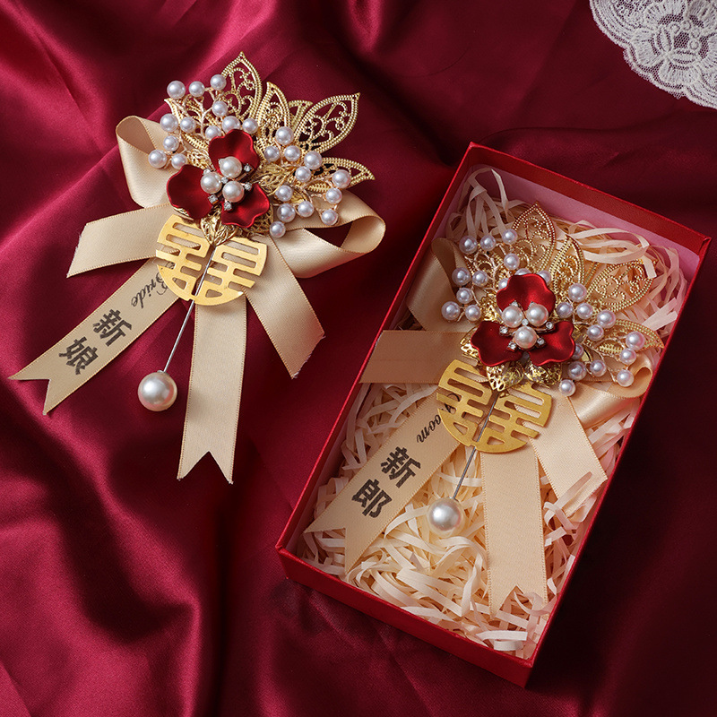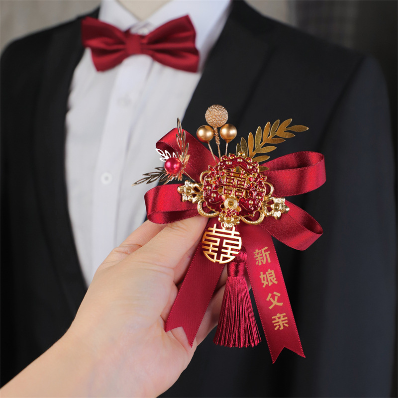 結婚胸花家族セット新郎新婦中国式父母結婚式襟花秀禾チャイナドレス高級ブローチ