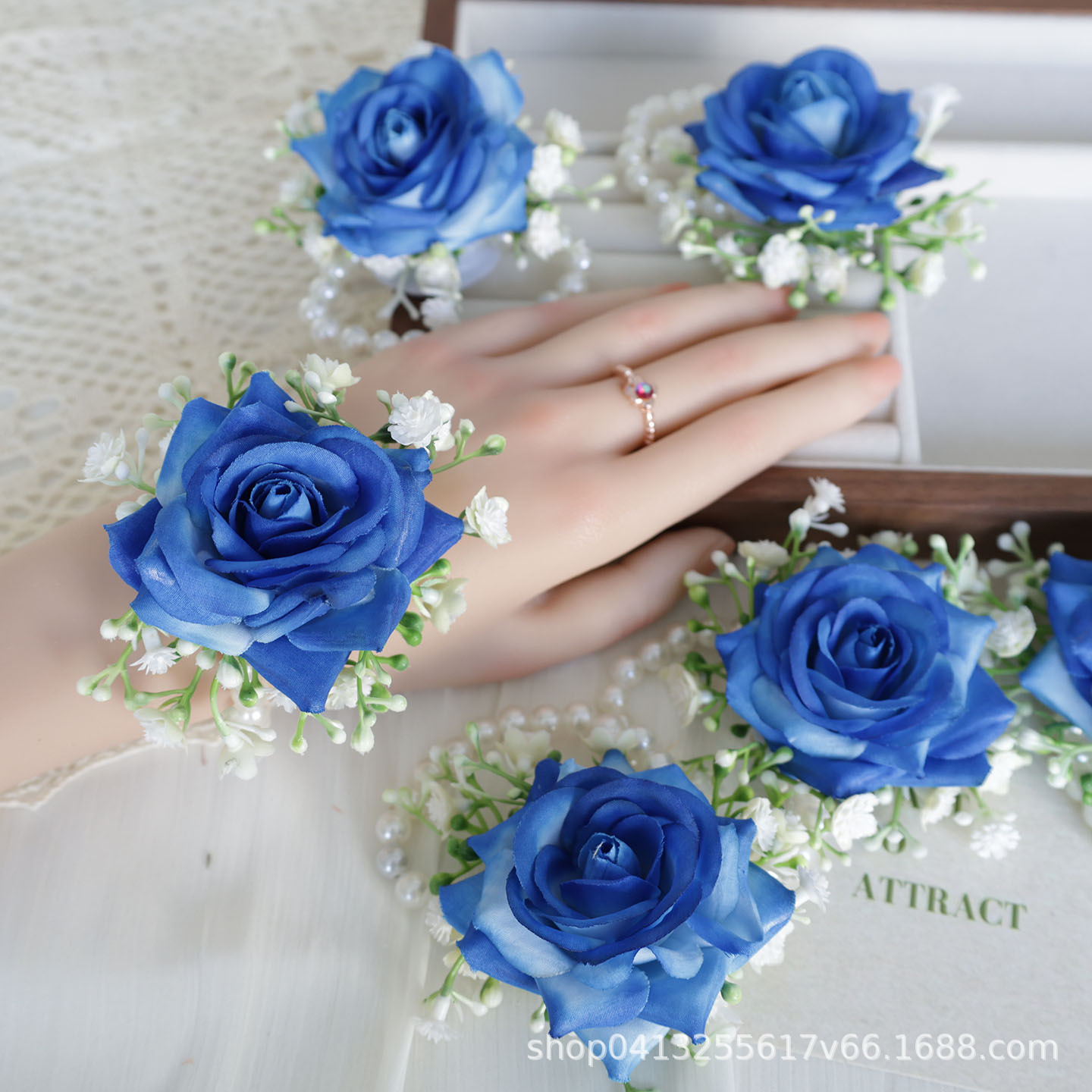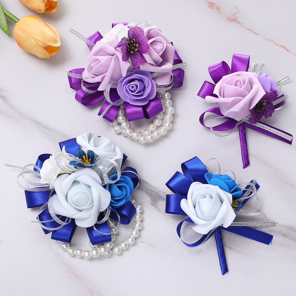 H0021 アマゾンクロスボーダー結婚式のお祝いゲスト模擬ローズコサージュ手首花ウェディング用品ブルー