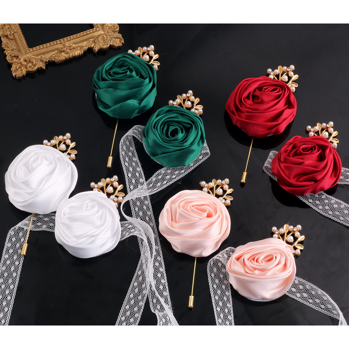 模擬ウェディングコサージュ、ヨーロピアンスタイル新郎新婦ウェディングコサージュ、ビジネスミーティングVIPゲストブローチ、越境輸出